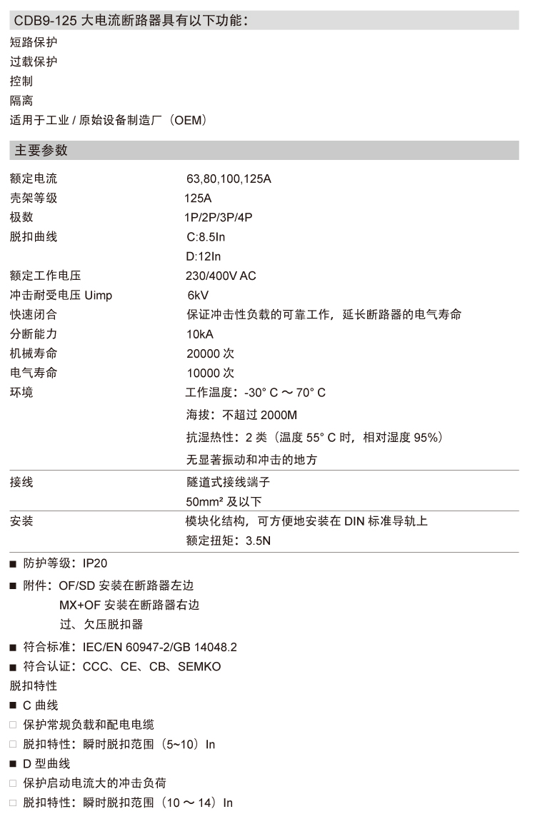 CDB9-125 小型大电流断路器