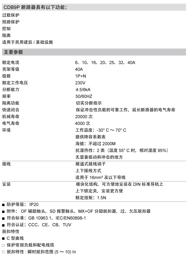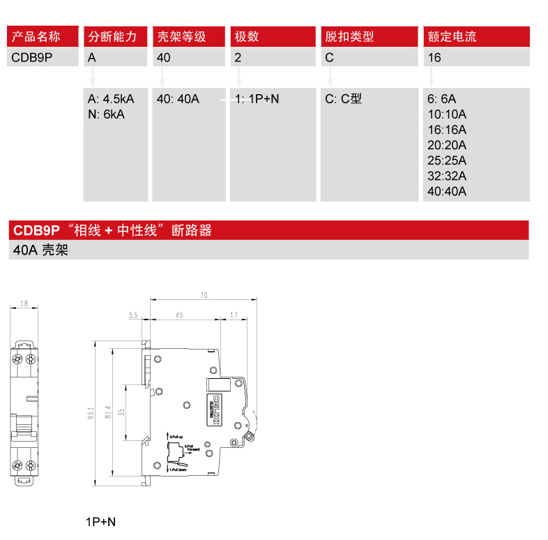CDB9P 相线+中性线小型断路器
