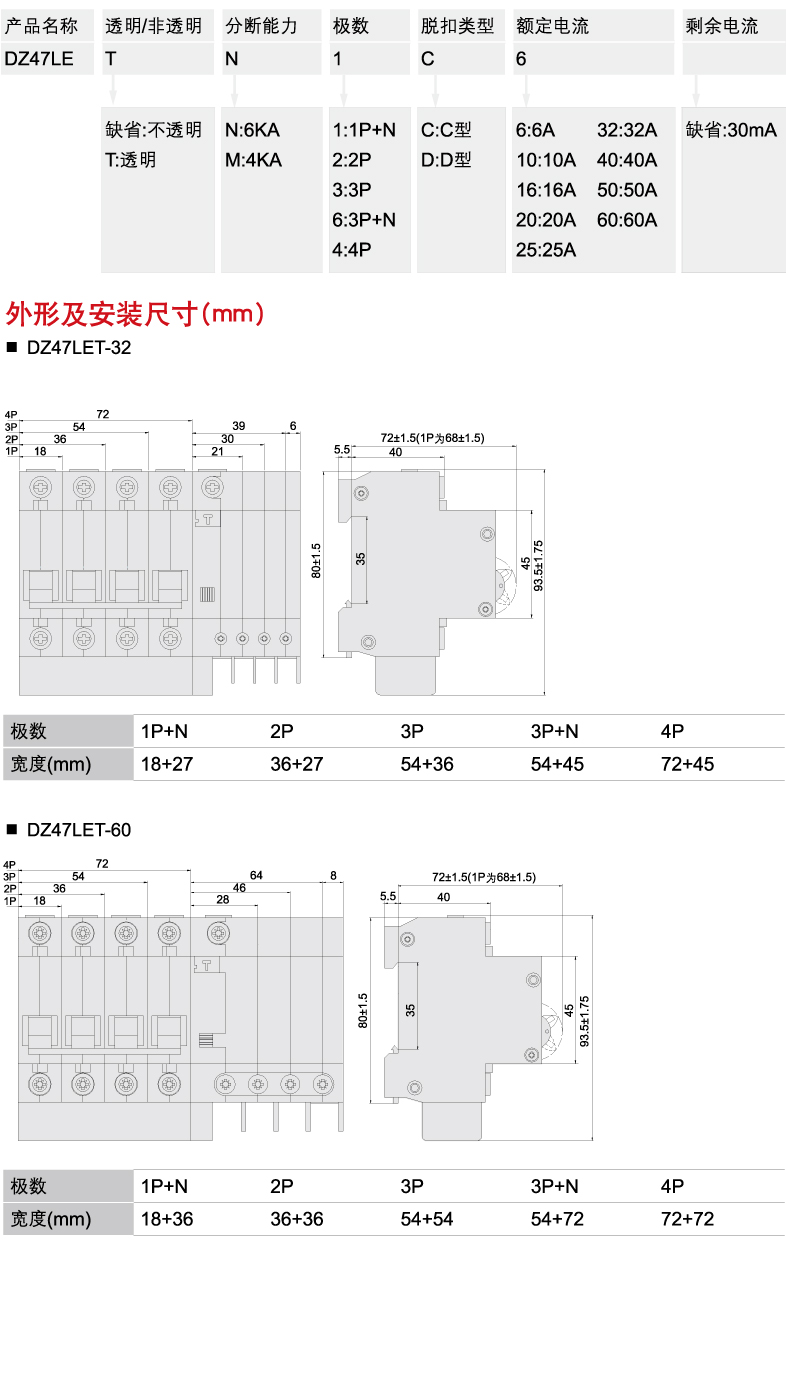 DZ47LET透明漏电保护断路器