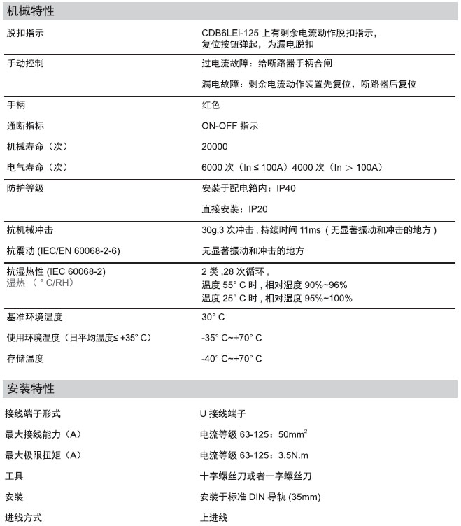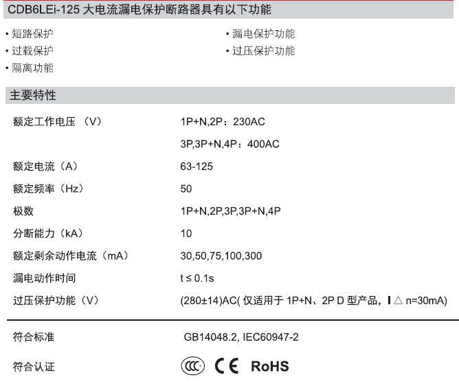 CDB6LEi-125大电流漏电保护断路器