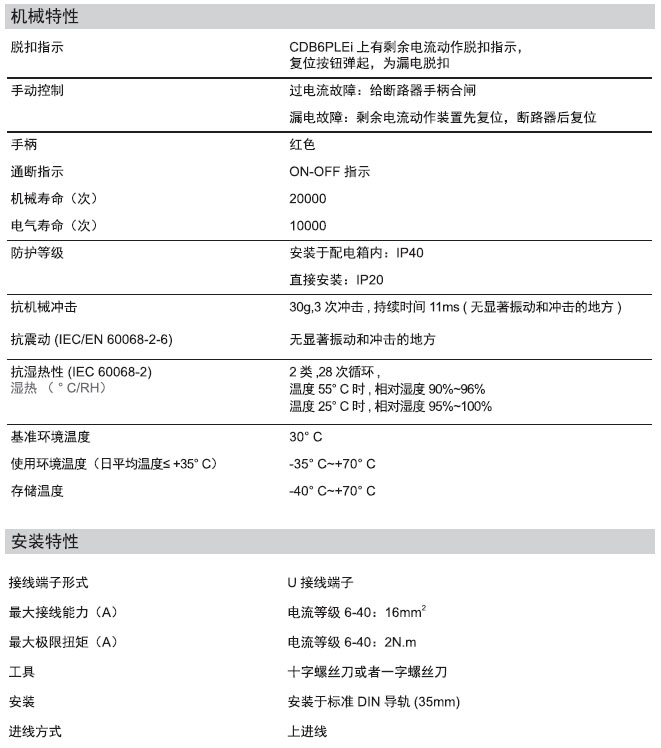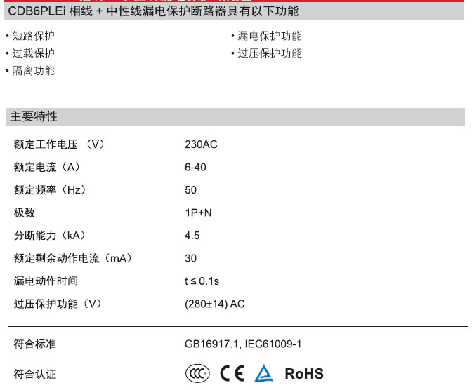 CDB6PLEi“相线+中性线”剩余电流动作断路器