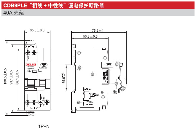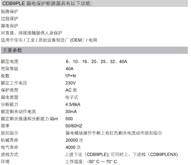 CDB9PLE 相线+中性线漏电保护断路器