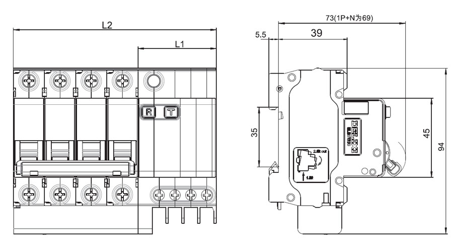 CDB9PLE 相线+中性线漏电保护断路器
