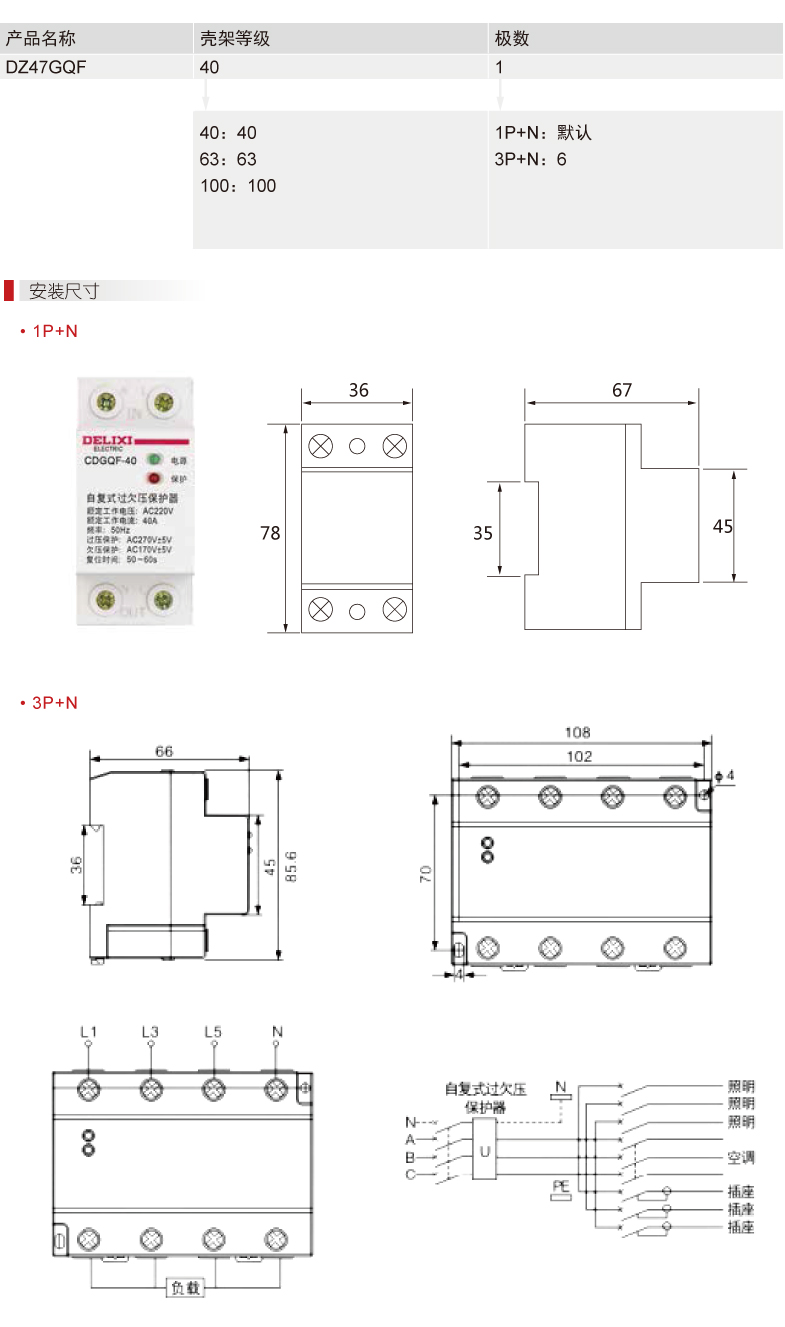 自复式过欠压保护器是针对电网或电源质量不稳定时对电气设备或家用电器进行自动控制、保护的一款产品。它主要适用于单相AC230V/或三相AC400V,频率50Hz,额定电流100A以下的用户或负载,如用户住宅分户箱进线或需要保护的单相用电设备及负载。