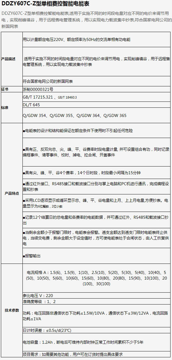 DDZY607C-Z型单相费控智能电能表