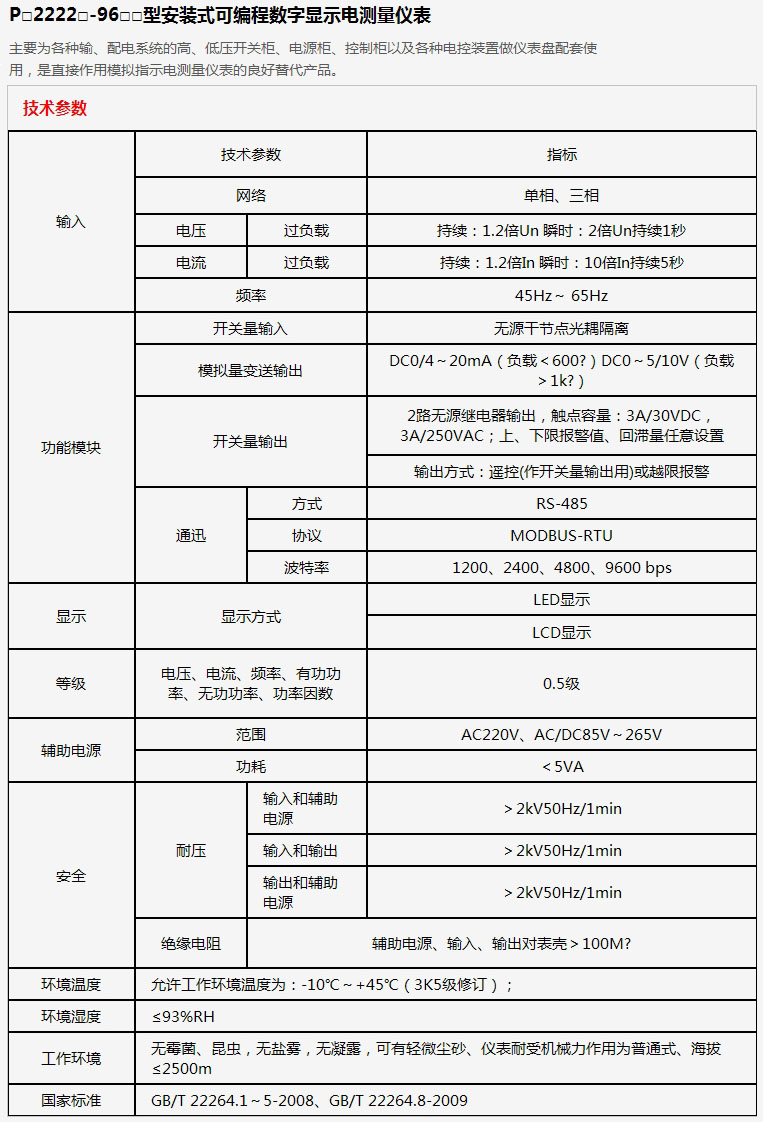 P□2222□-96□□型安装式可编程数字显示电测量仪表