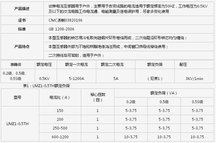 LMZ1-0.5TH 型电流互感器