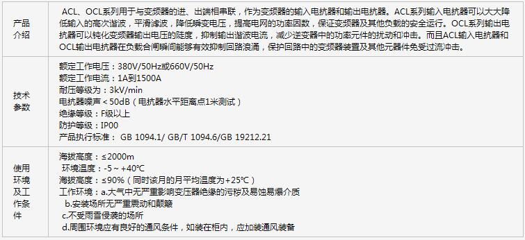 ACL、OCL系列输入、输出电抗器