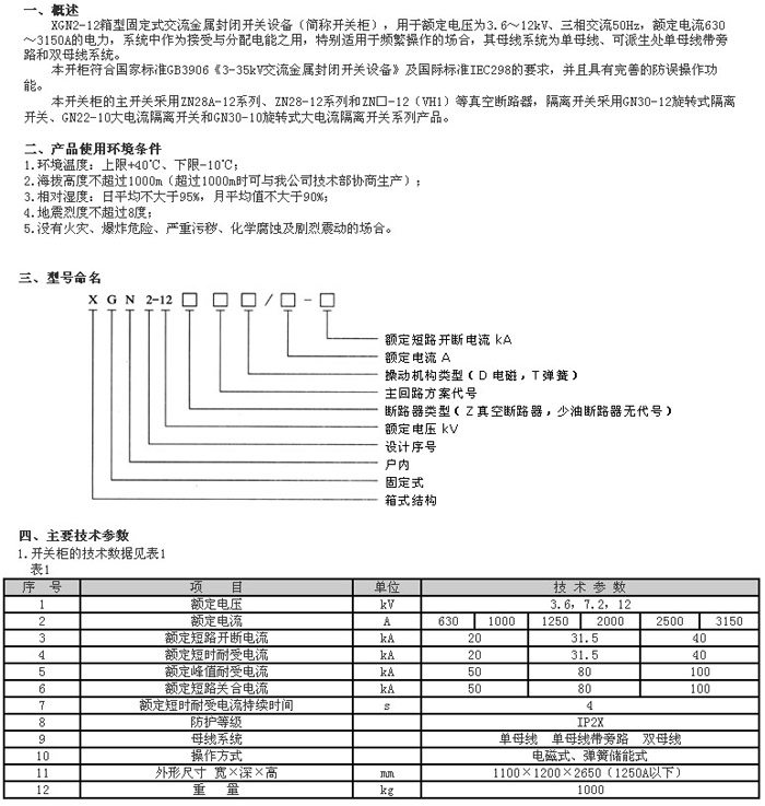 XGN2-12箱型固定式交流金属封闭开关设备