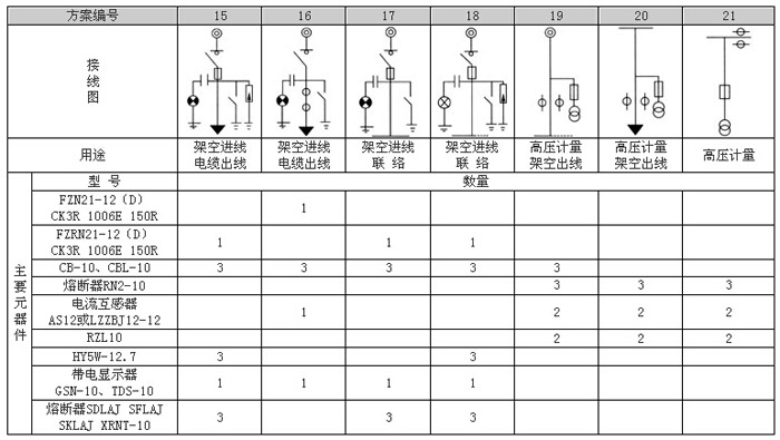 a、其柜内主要元件可装ABB公司C3系列(带接地开关)中Ck3高压负荷开关或CS3高压负荷开关—熔断器组合电器。也可根据用户要求配置国内厂家生产的高压负荷开关或我公司生产的FZN21-12D/630高压负荷开关、FZRN21-12D高压负荷开关—熔断器组合电器。