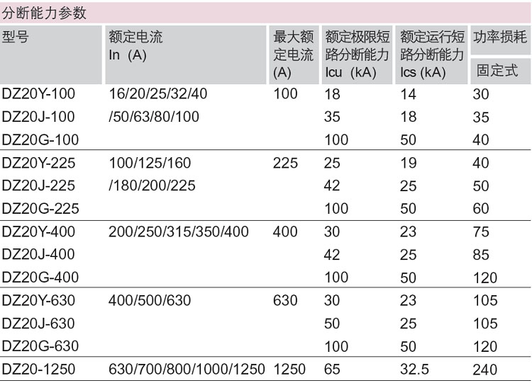 DZ20系列热磁式塑料外壳式断路器
