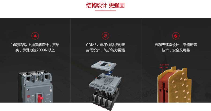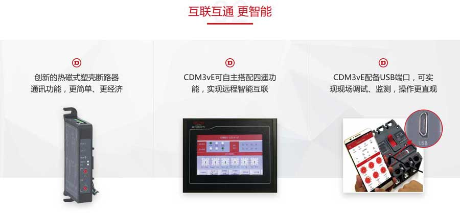 登峰系列电子式塑壳断路器CDM3vE实现了产品的完美升级。 CDM3vE电流覆盖广,分断能力强,远程四遥通讯,实现智联互通;支持手机APP通讯和报警不脱扣功能;产品极限使用温度可达 -40℃~70℃。