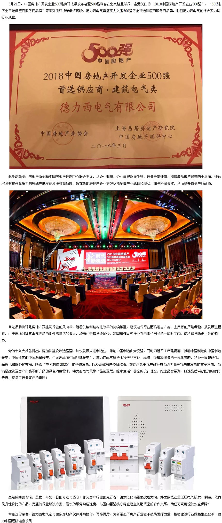 坚守与突破-德力西电气五度入围500强房企首选供应商品牌