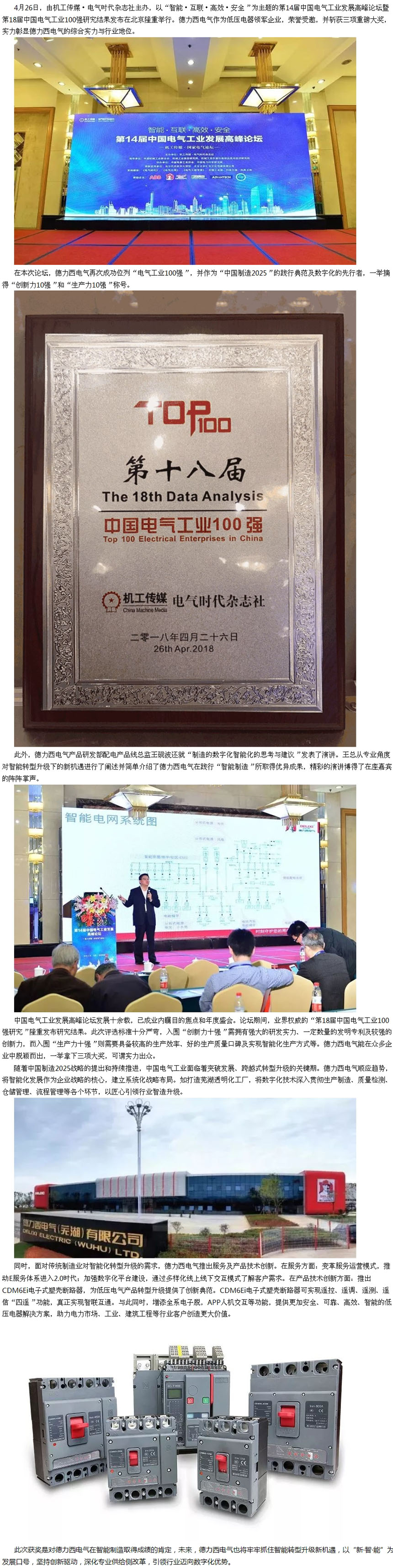 实力铸荣耀-德力西电气再次荣膺“电气工业100强”殊荣